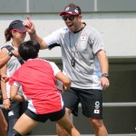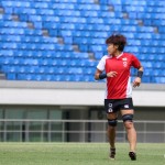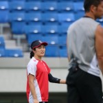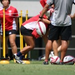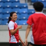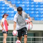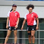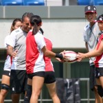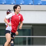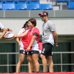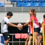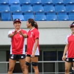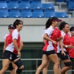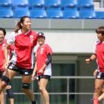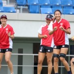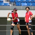 大舞台までいよいよ1週間を切り、緊張感漂うチームの雰囲気かと思いきや、サクラセブンズの表情は柔らかく、時折笑顔を見せながら大小さまざまなボールを使用しウォーミングアップを行った。