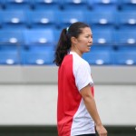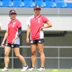 練習後、全員で集合写真に収まると、デュアルキャプテンの清水麻有選手とバティヴァカロロ ライチェル海遥選手が挨拶。