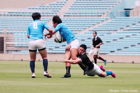 最初の得点は理工系リーグ選抜。10番・武藤倖吉選手(東京農業大学)のトライ・コンバージョンゴールで7点を先制するが、 すぐさま医歯薬リーグ選抜が7番・向坊颯選手(千葉大学医学部)、8番・ 長谷川皓選手(日本歯科大学歯学部)らのトライで逆転。