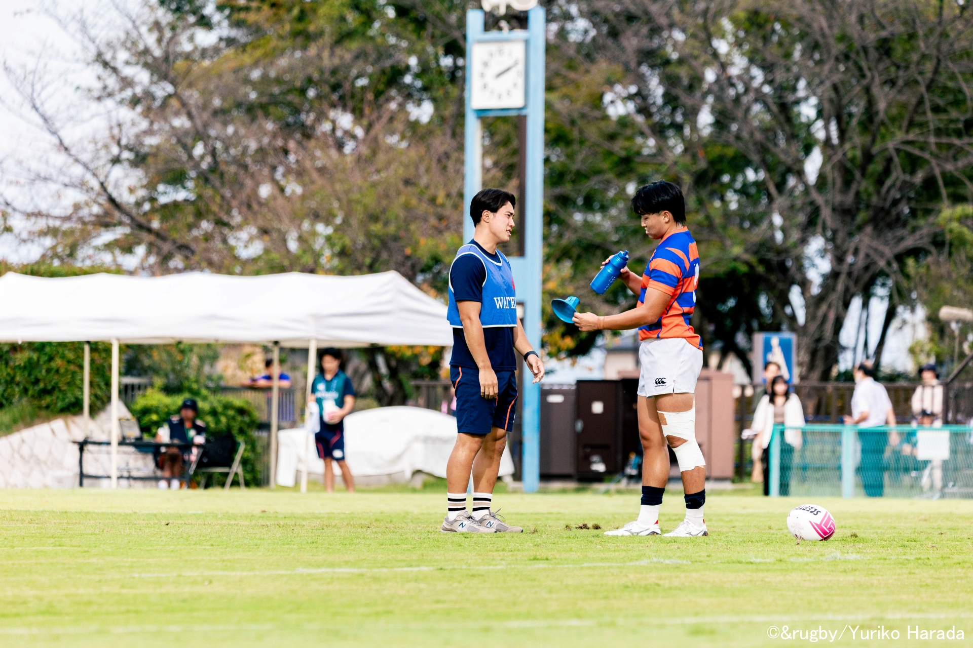 左がクラブキャプテンの北川拓来選手。右がゲームキャプテンの田中大誠選手。北川クラブキャプテンは、ウォーターとしてチームを支えた