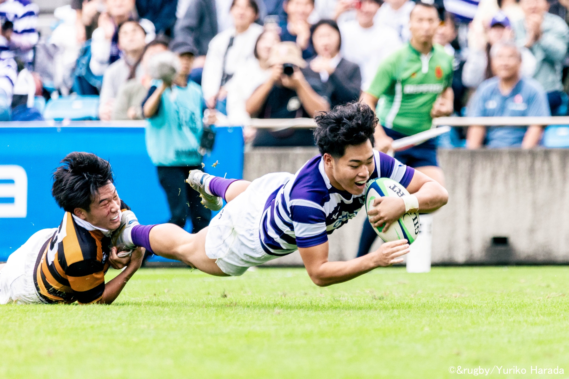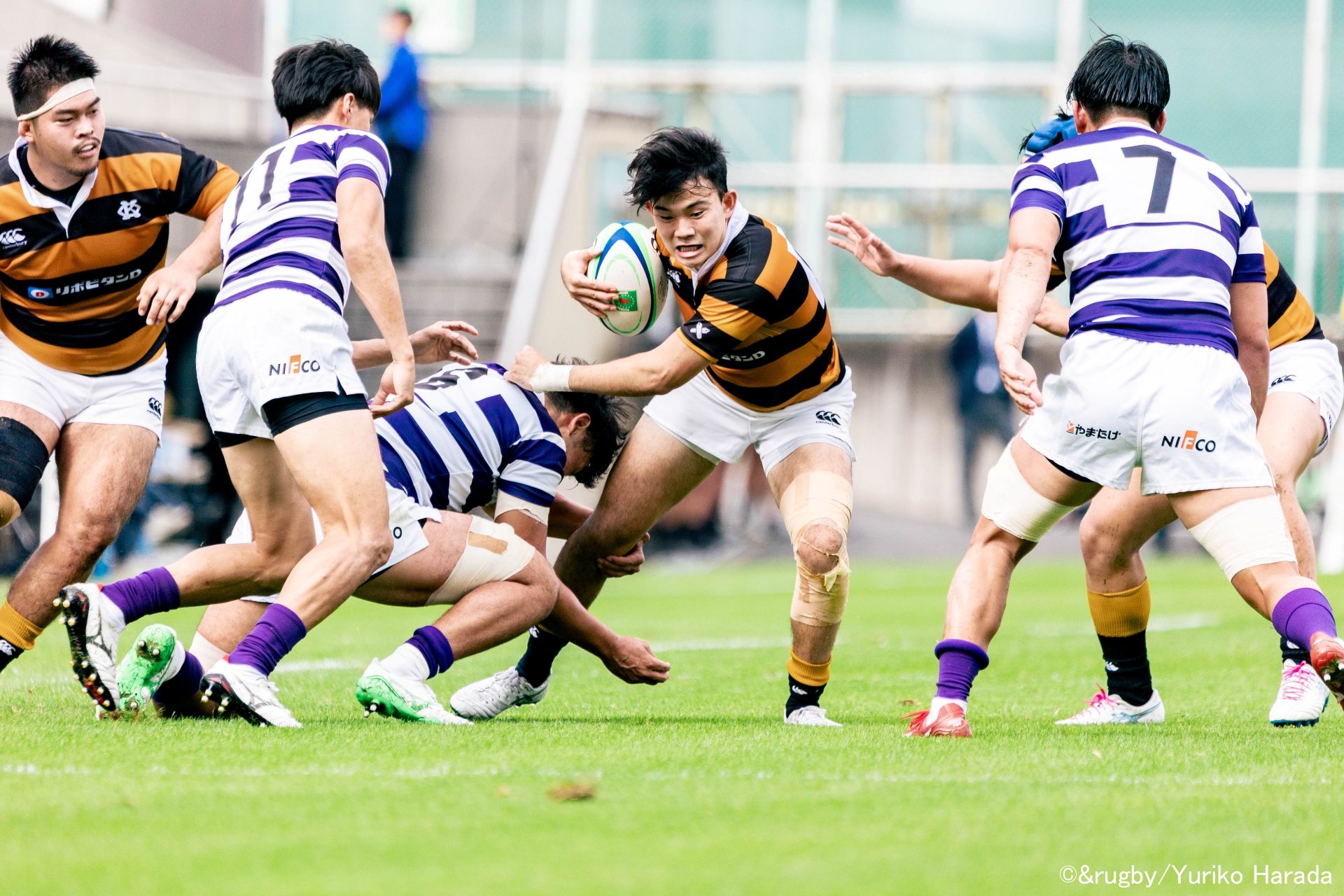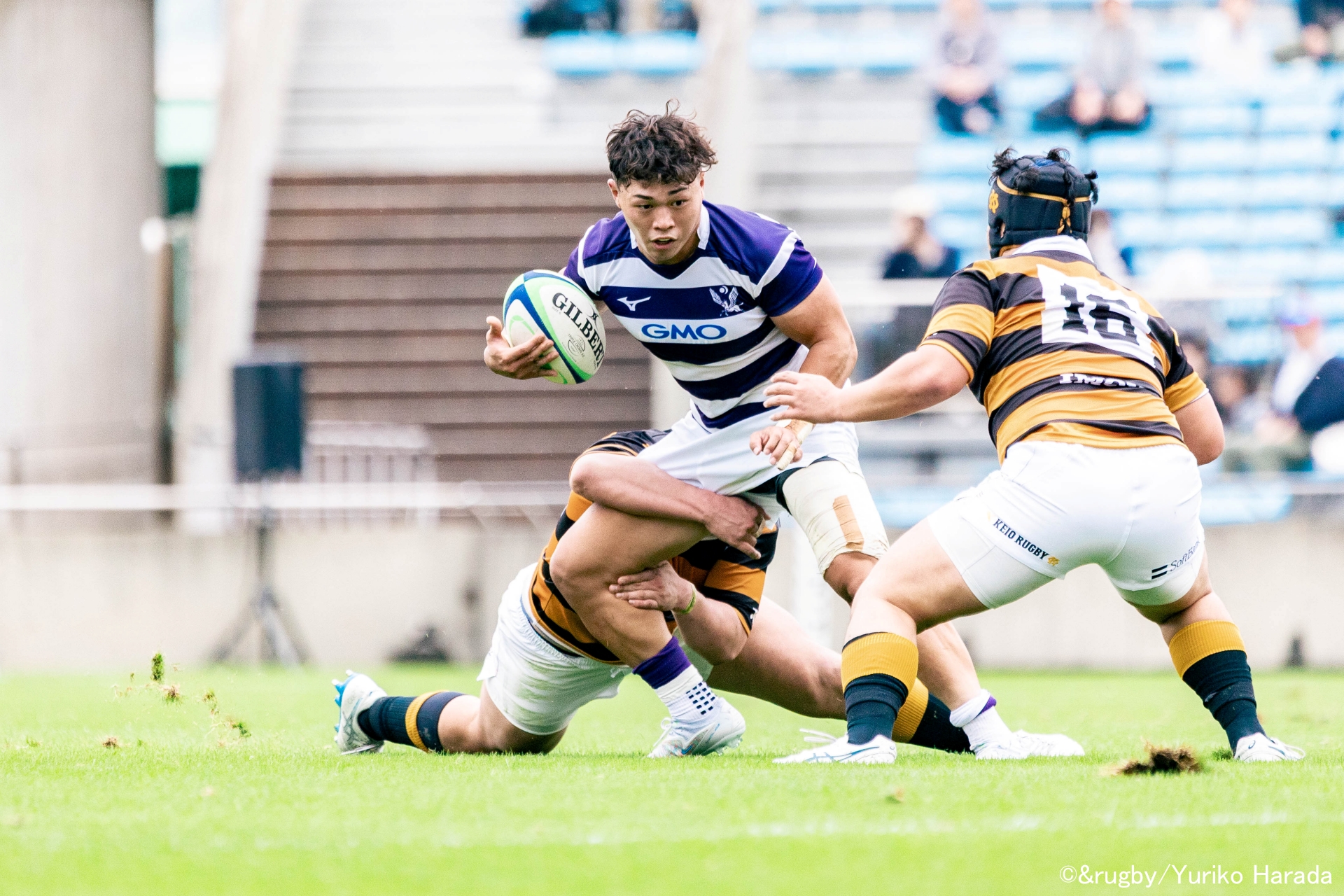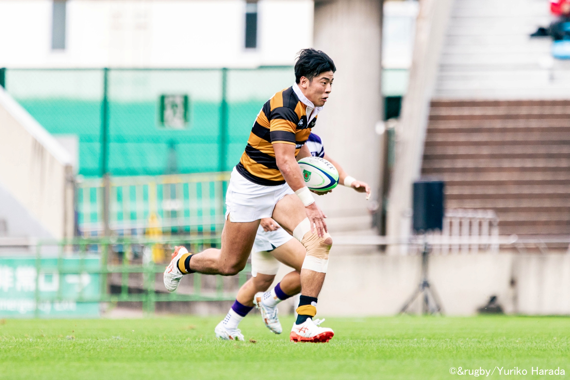 慶應義塾大学の背番号10を担った小林祐貴選手はその時のゲームメイクについて「フォワードでポゼッションを取るというよりも、ボールを振ってバックスで繋ぎ、逆サイドもうまく使いながらトライを狙っていました」と語る。