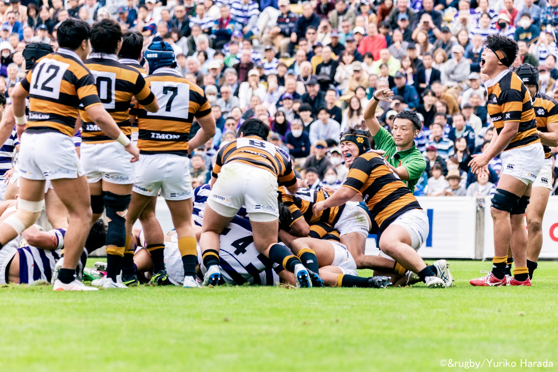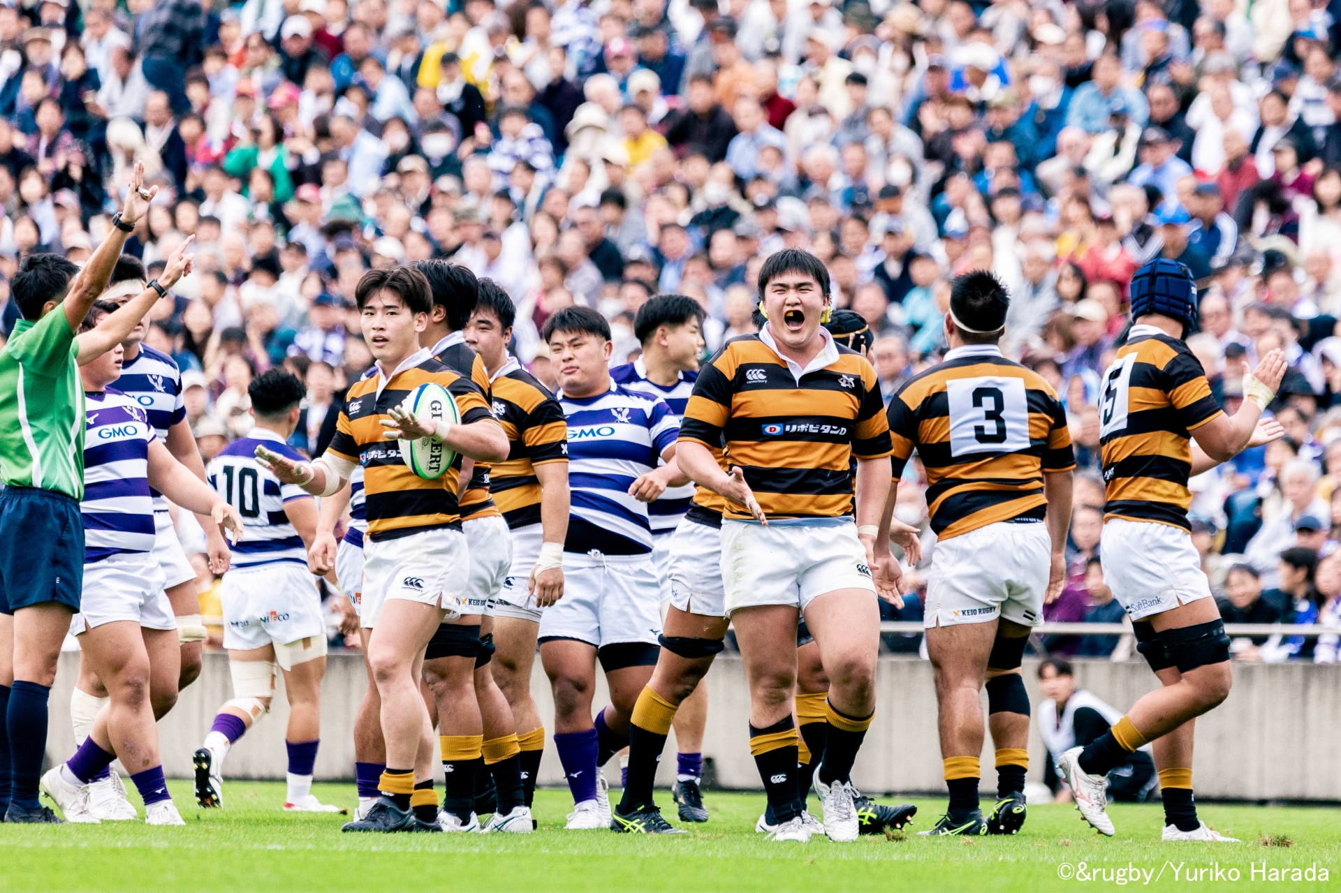 11月2日(日)、秩父宮ラグビー場では慶應義塾大学と明治大学の伝統の一戦が行われ、22対24で明治大学が接戦を制した。