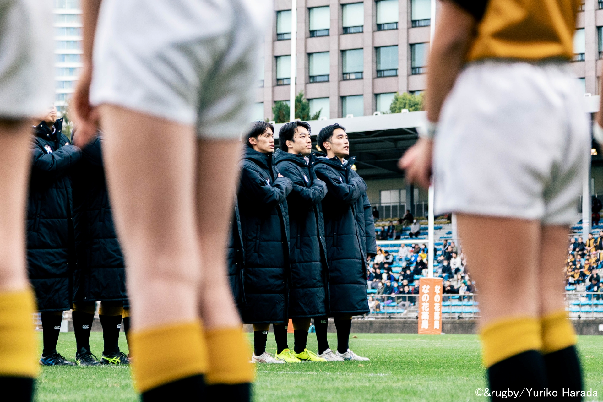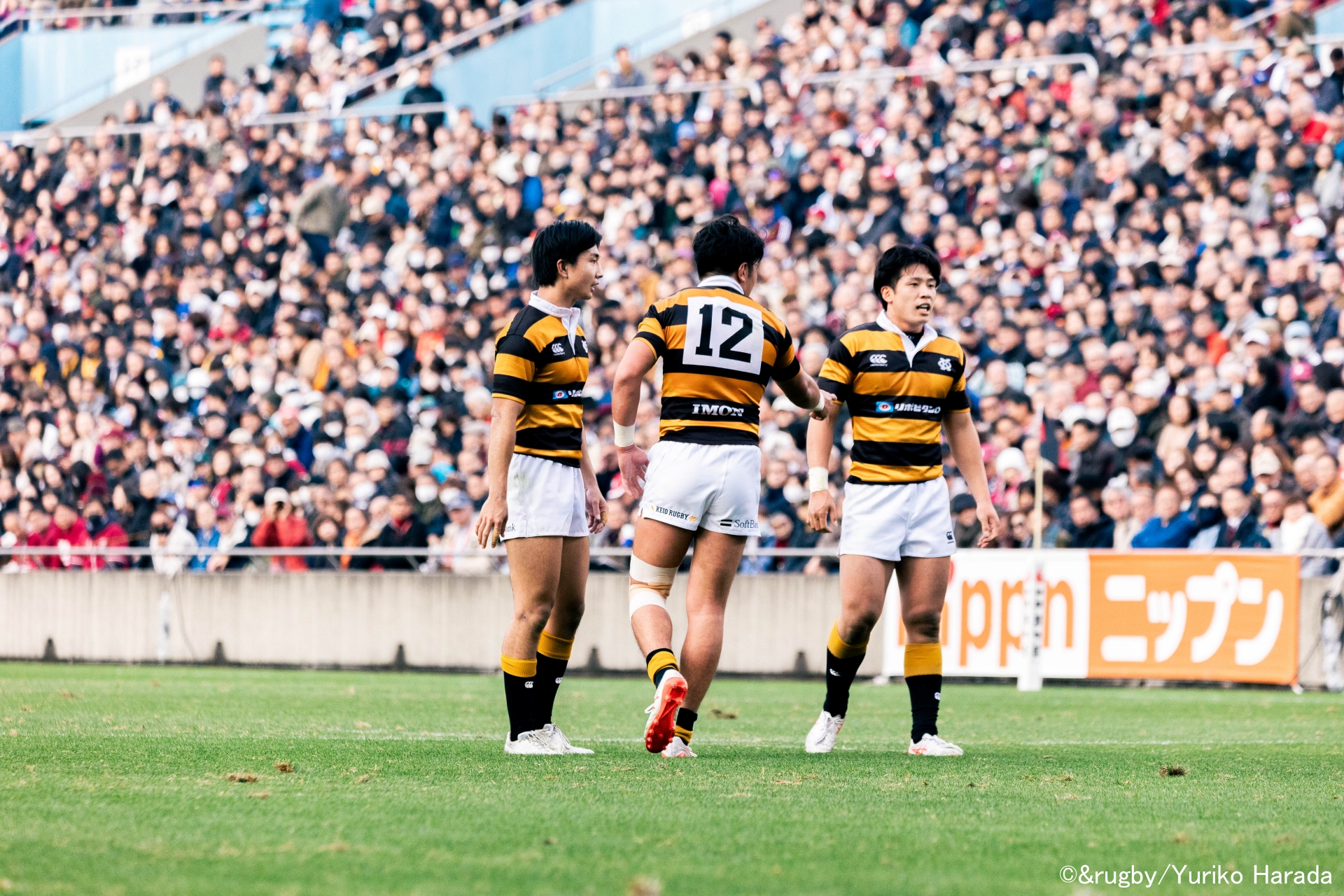 エスコートキッズの手をひき、秩父宮ラグビー場に踏み進んだ慶應義塾大学 第126代主将・今野椋平選手は、小さく「よしっ」と声を漏らし、朗らかな表情でほほ笑んだ。