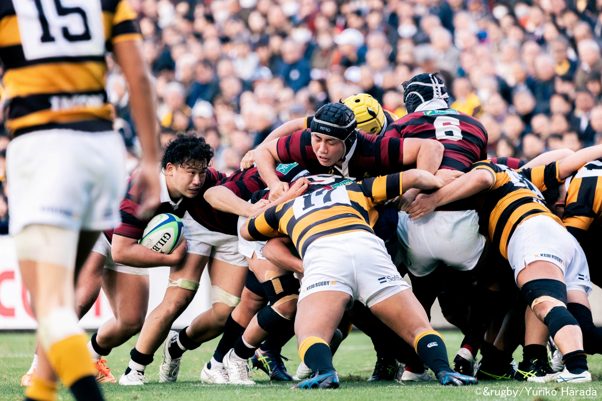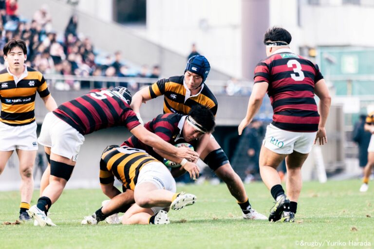 試合終了間際、慶應義塾陣もトライライン目前まで迫ったが取り切れずノーサイド。