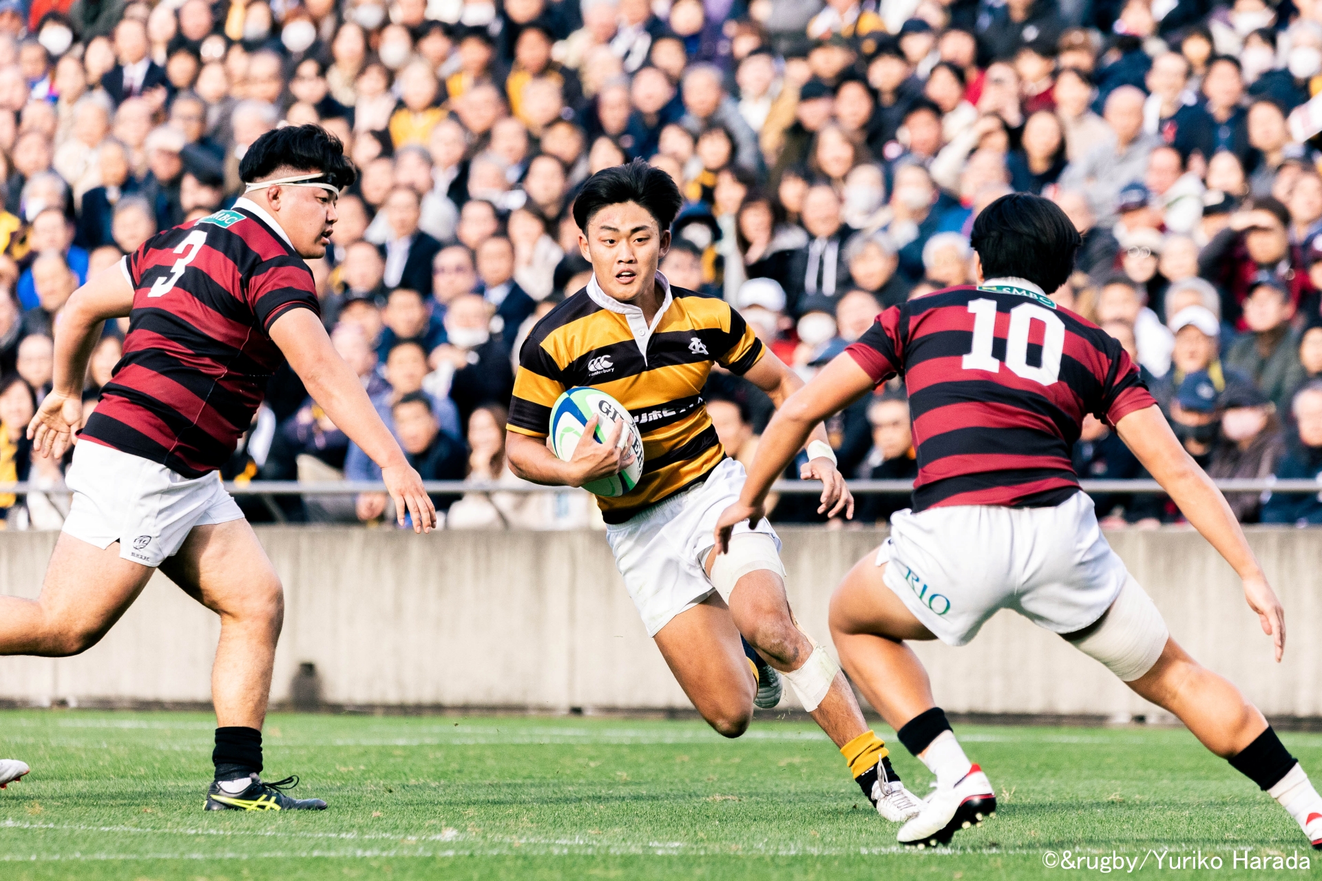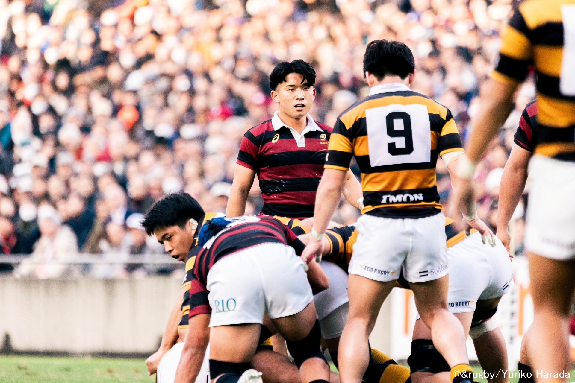 伝統の一戦でアカクロジャージーを掴んだのは、スクラムハーフの川端隆馬選手、1年生だった。