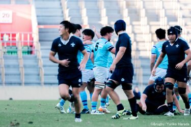立教も最後までトライを狙い続けたが、スクラムでの反則や自陣から抜け出せない時間が重なり、得点チャンスを継続できなかった。