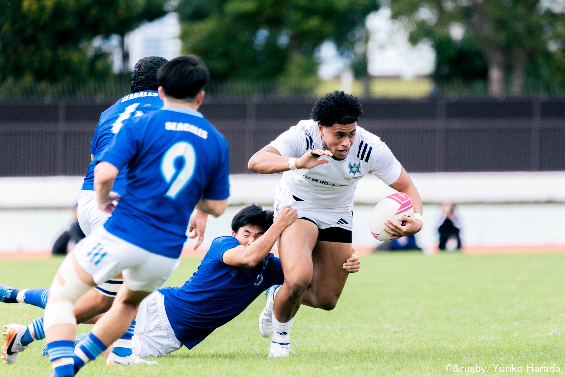試合はシーソーゲームの展開。何度もリードが入れ替わる激しい攻防となったが、最後は東海大学が27-28と引き離した。