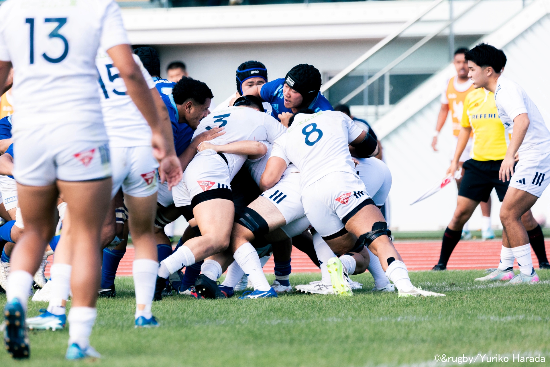 スタンドに緊張が走る中、グラウンドの内側から全速力で走り込み、タッチラインへと押し出したのは東海大学主将・薄田周希(7番)選手だった。