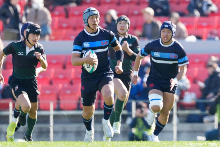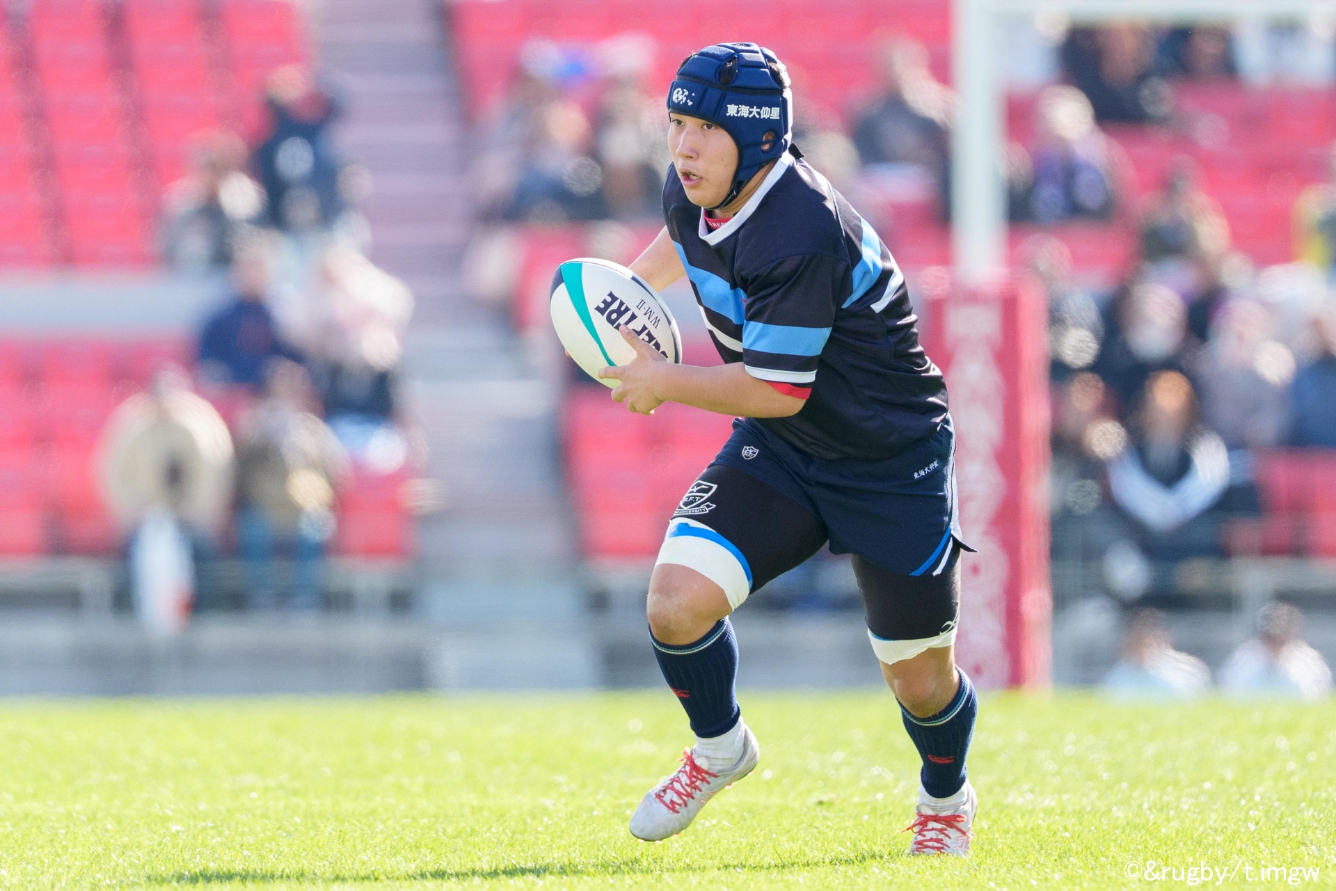 その後も立て続けに得点を重ねた東海大大阪仰星。前半だけで8トライを決め、50–0と大きくリードを広げた。