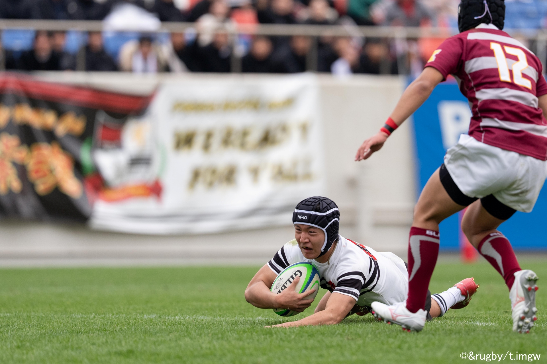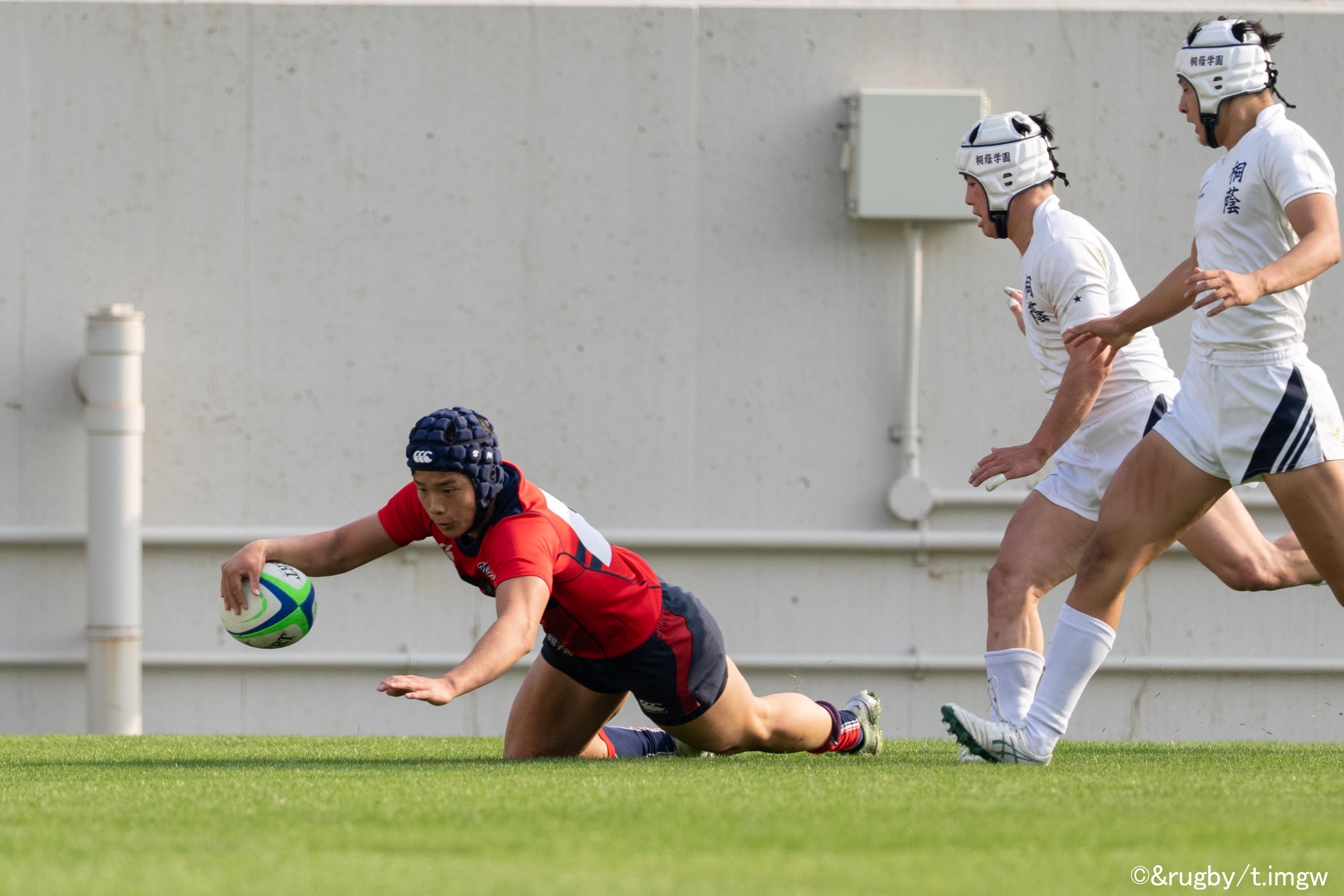 この日は両校ともに反則数5つ以下と規律高く戦ったが、フォワードで取り切り、またキックパスで仕留めるなど多彩な攻撃力を見せた桐蔭学園が5-37で勝利。
