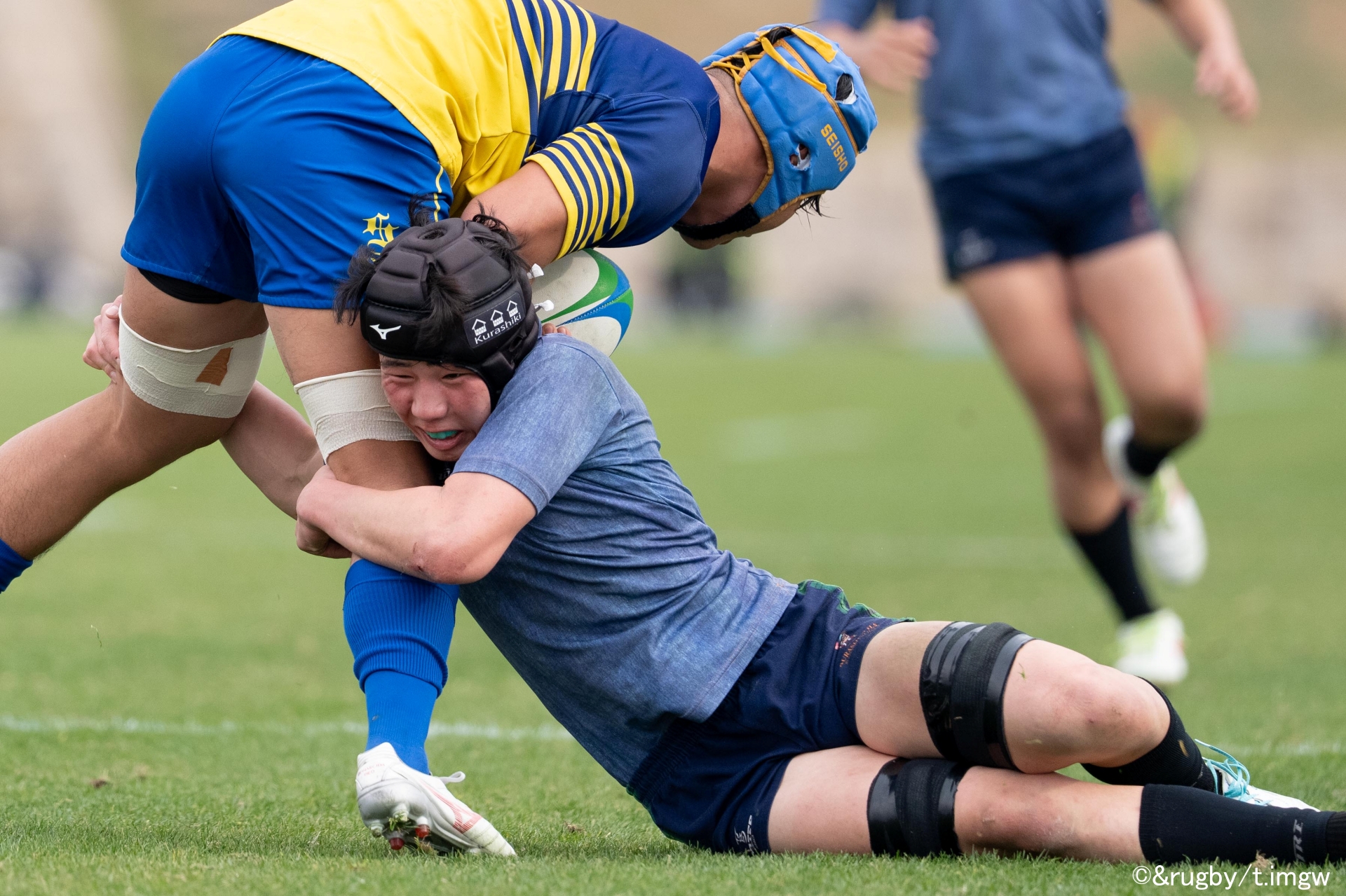 その後は倉敷の粘り強いディフェンスに阻まれ、得点が動かない時間帯が続いたが、前半21分の11番・齊藤稀茶選手がフィニッシュすると、ここから一気に流れを引き寄せる。立て続けに3トライを奪い、26-0と大きなリードで前半を終えた。