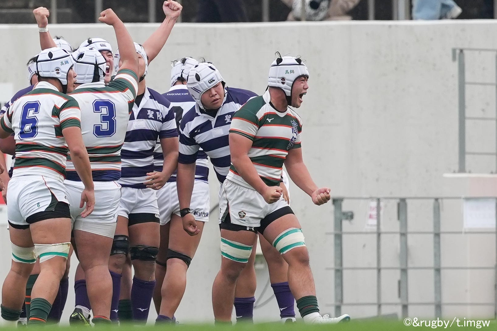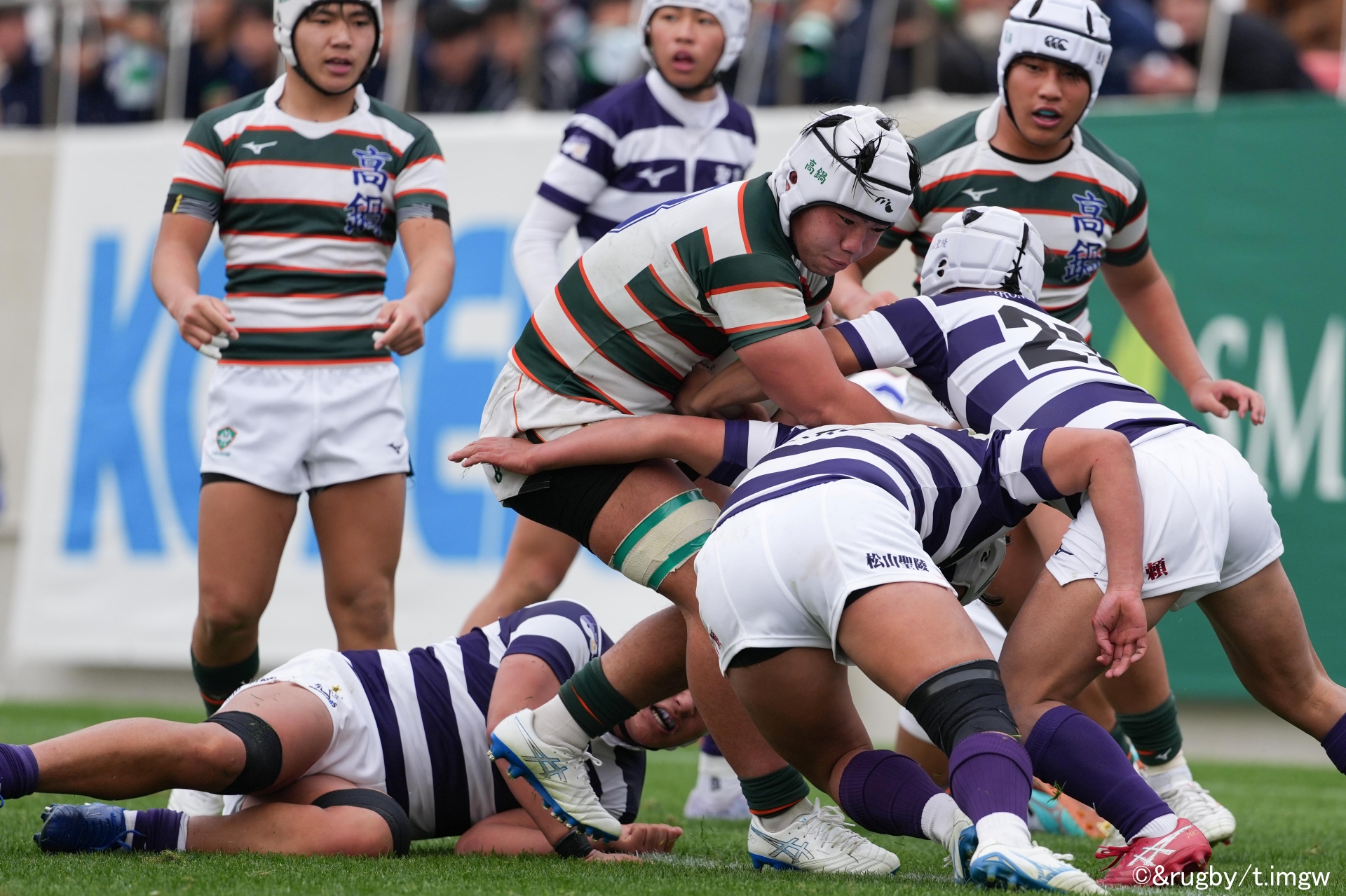 当時九州チャンピオンだった大分東明と2回戦で対戦した高鍋は、強いフォワード力を武器に26-26の同点を演じた。