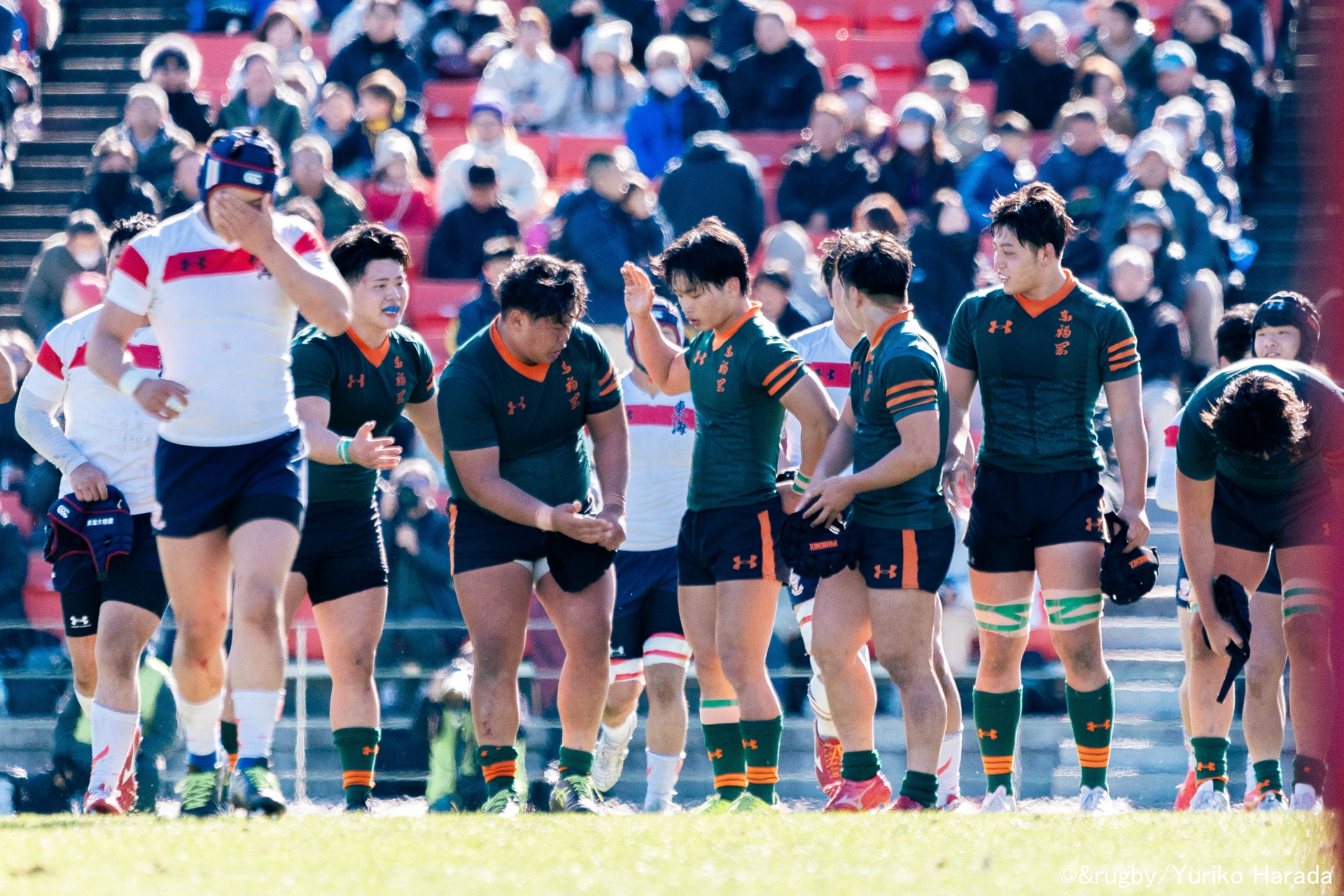 12番・半田悦翔選手と13番・八尋奏選手のランは前進を生み、14番・平尾龍太選手のディフェンスは要所で流れを断ち切った。