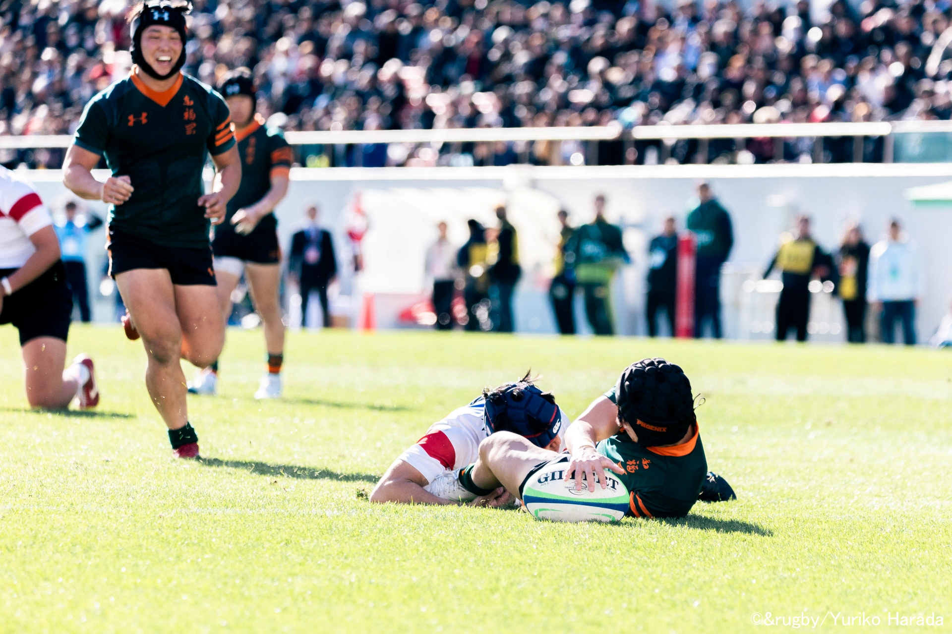 迷いなく加速し、ラックサイドへと踏み込む。そのままトライラインを越え、逆転トライを決めた。