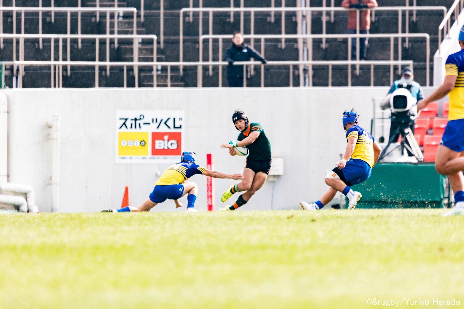 ハンドオフしながら自陣22mから敵陣5m近くまで、70m超を1人でボールを前に運んだ平尾選手。