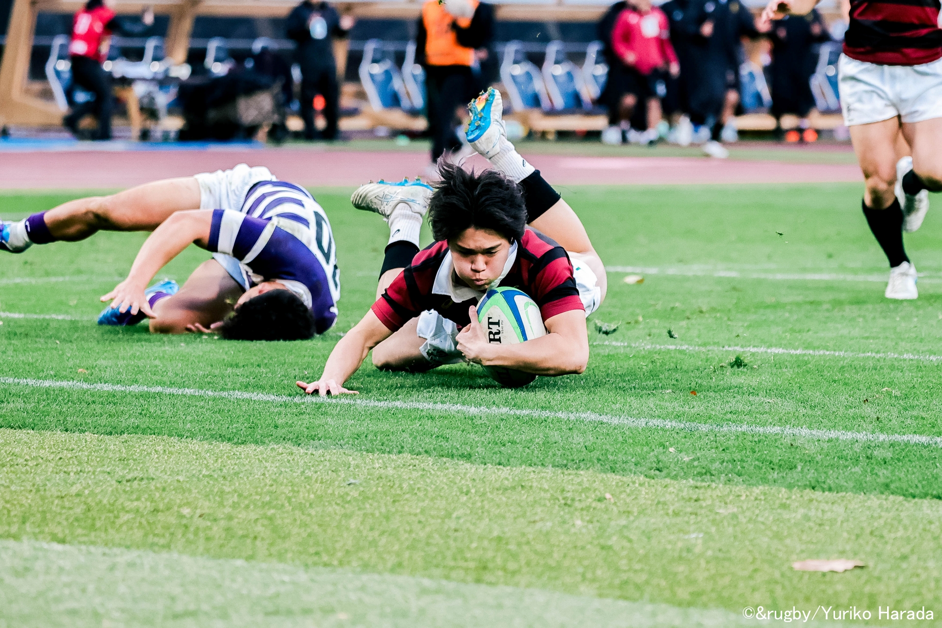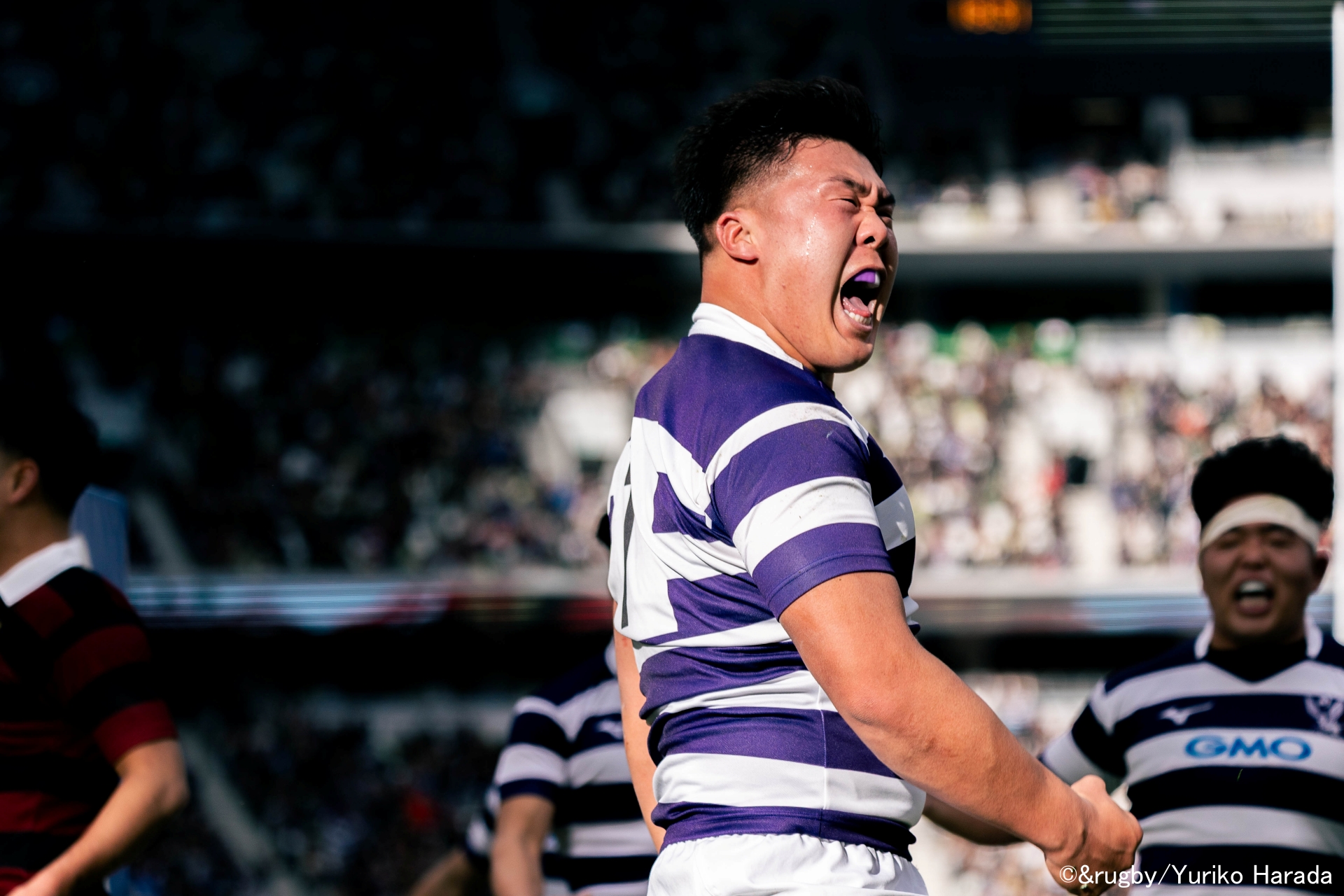 前半19分、ラインアウトから1番・田代大介選手が中央へ飛び込み、ファーストトライ。さらに前半33分には10番・伊藤龍之介選手がトライを重ね、14-3とリードを広げて前半を折り返した。