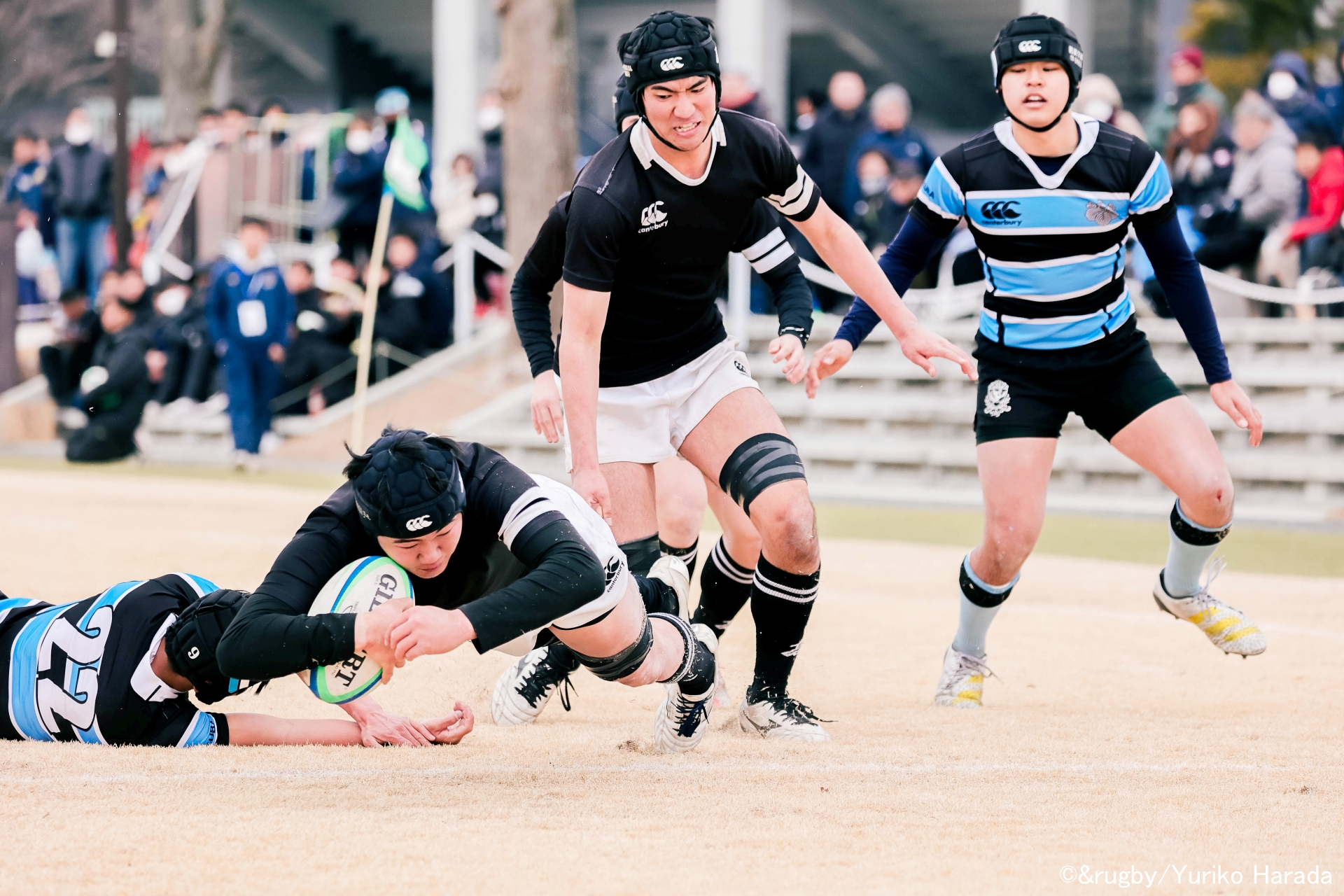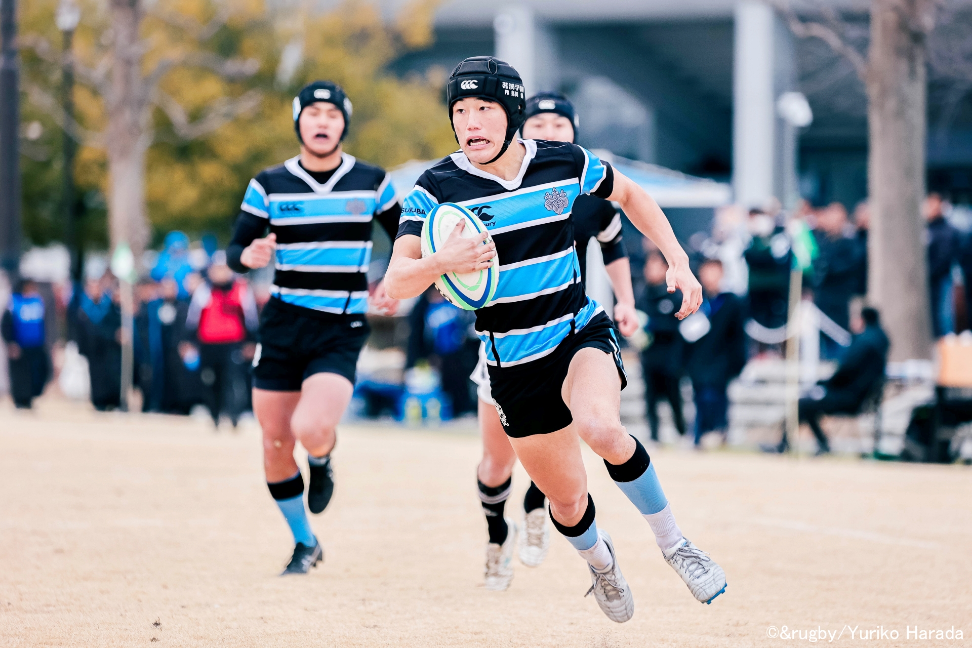 その流れから得点に結びつけたのは東海大相模だった。一度はキックチャージ直後のペナルティでプレーが止まったものの、続く攻撃から順目に当ててボールを展開すると、後半15分、左サイドを突き11番・黒木瑛大ゲームキャプテンがトライ。ゴールは外れ、12-14と2点差に迫った。