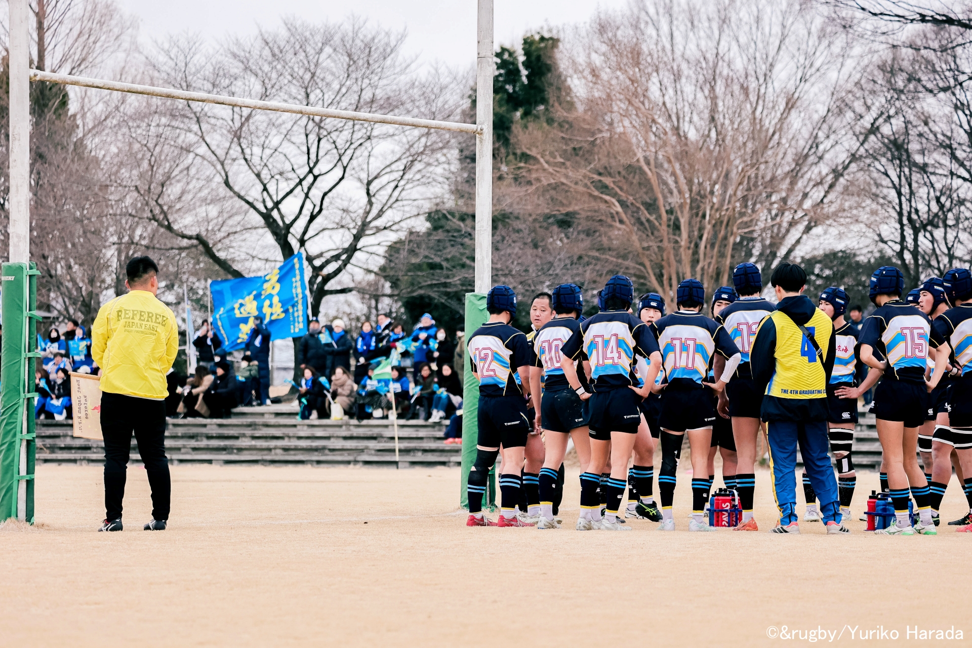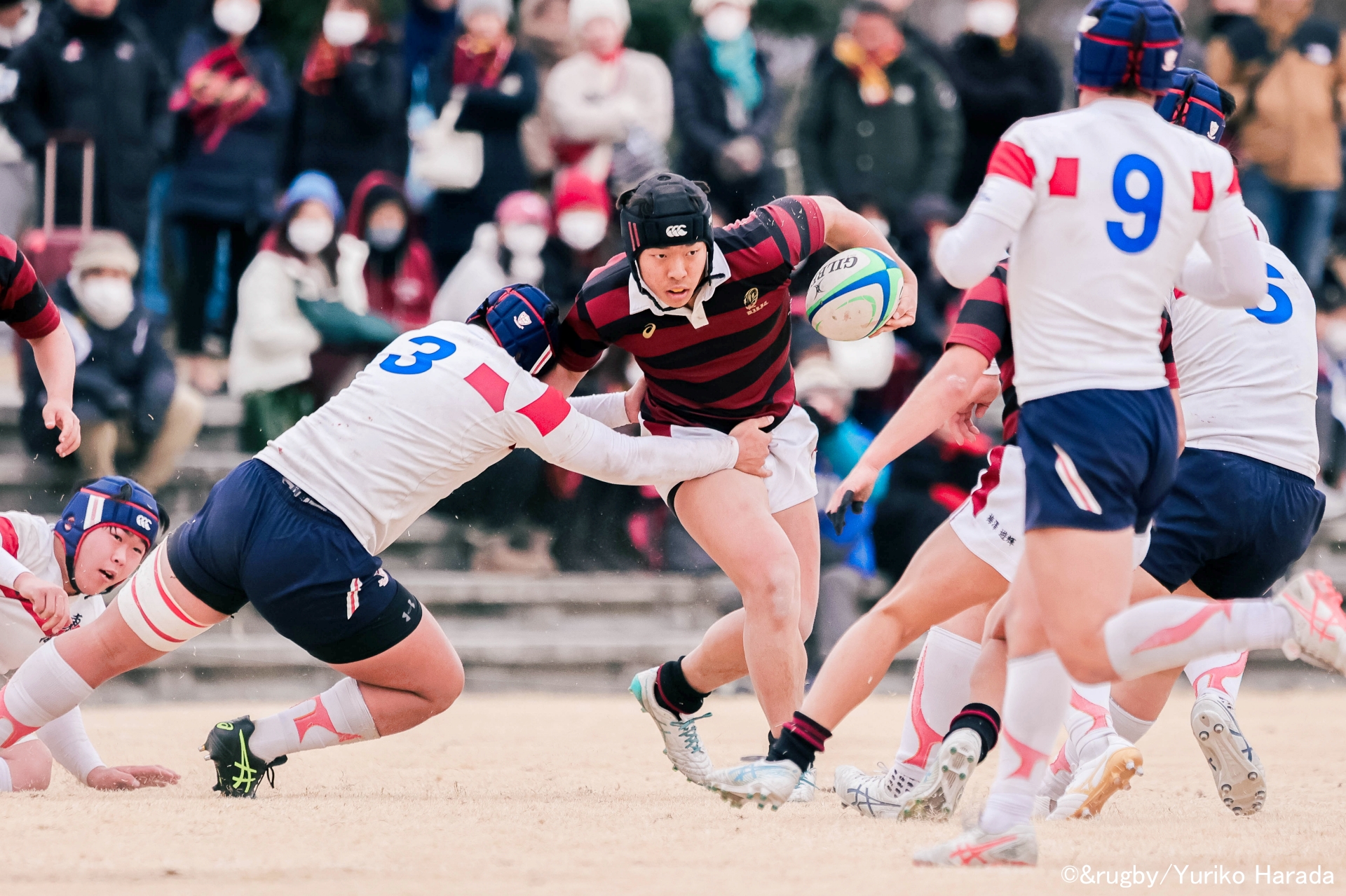 対する東海大相模は、トライライン目前での粘り強いディフェンスを見せる。ただ、ボールを動かし反撃に出る場面では、エッジでのミスが目立ちチャンスを生かしきれない。スタンドからは、惜しむ声が何度も上がった。