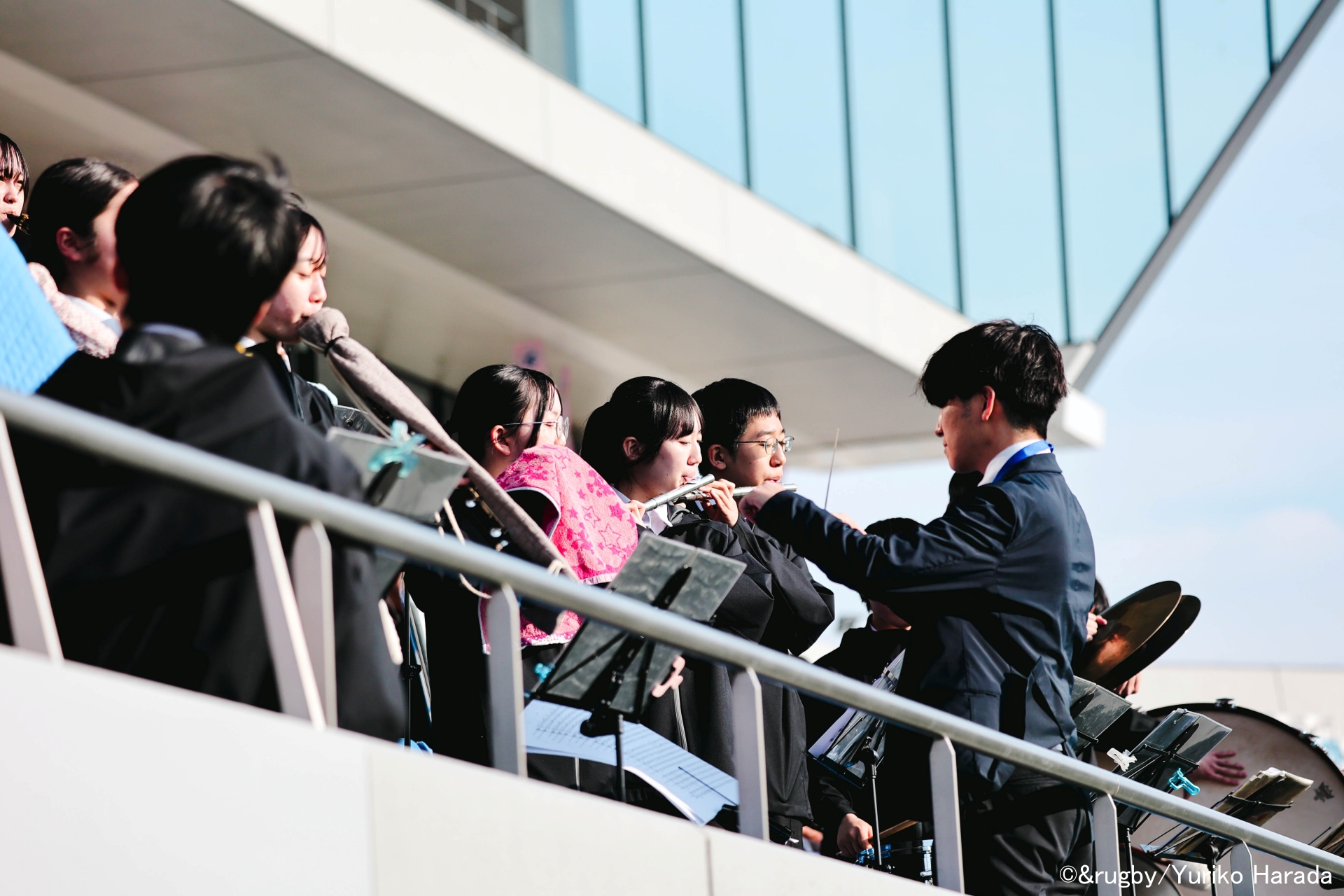 演奏は埼玉県立大宮高等学校吹奏楽部。毎年、音色で後押しをしてくれている