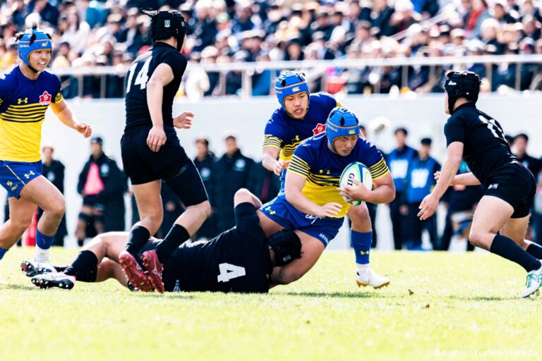 第62回全国大学ラグビーフットボール選手権大会の準決勝が1月2日(金)、東京・MUFGスタジアム(国立競技場)で行われた。 12時25分キックオフの第1試合では、早稲田大学と帝京大学が対戦。一時は帝京大学がリードしたものの、前半終盤以降に連続得点で引 […]